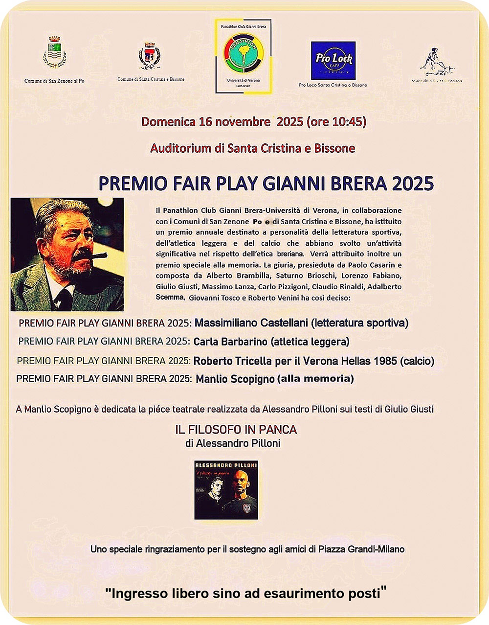 Alessandro Pilloni  Spettacoli   Premio Fair Play Gianni Brera 2025